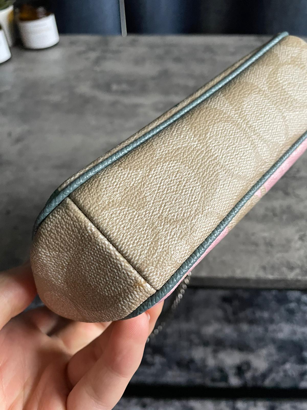 Coach Monogram Flower Print Mini Handbag/Shoulderbag Beige authentic good condition