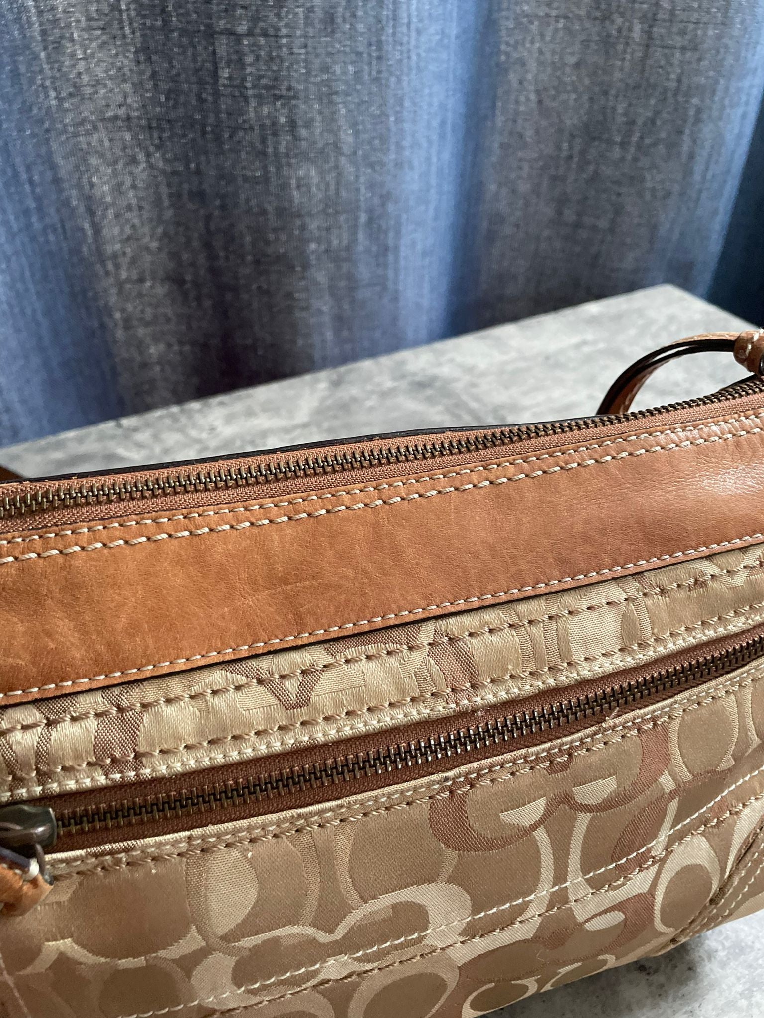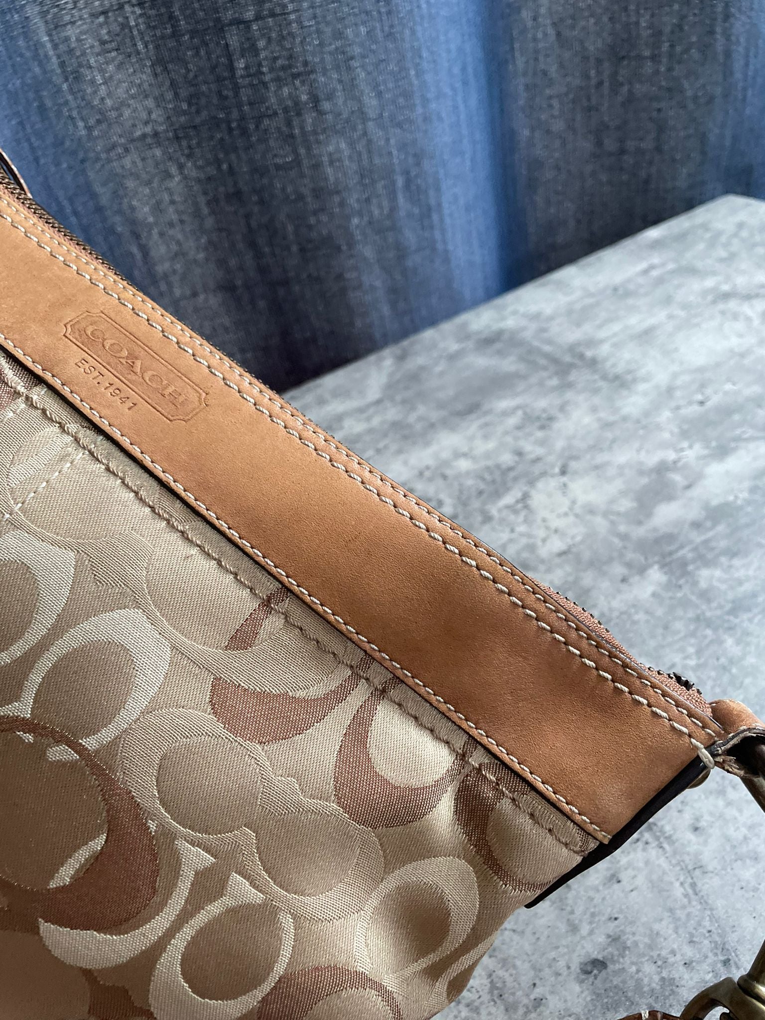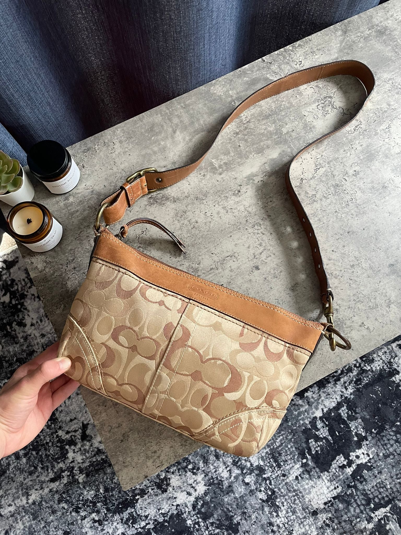 Vintage Coach Monogram Crossbody Bag Beige/Brown Y2k Authentic
