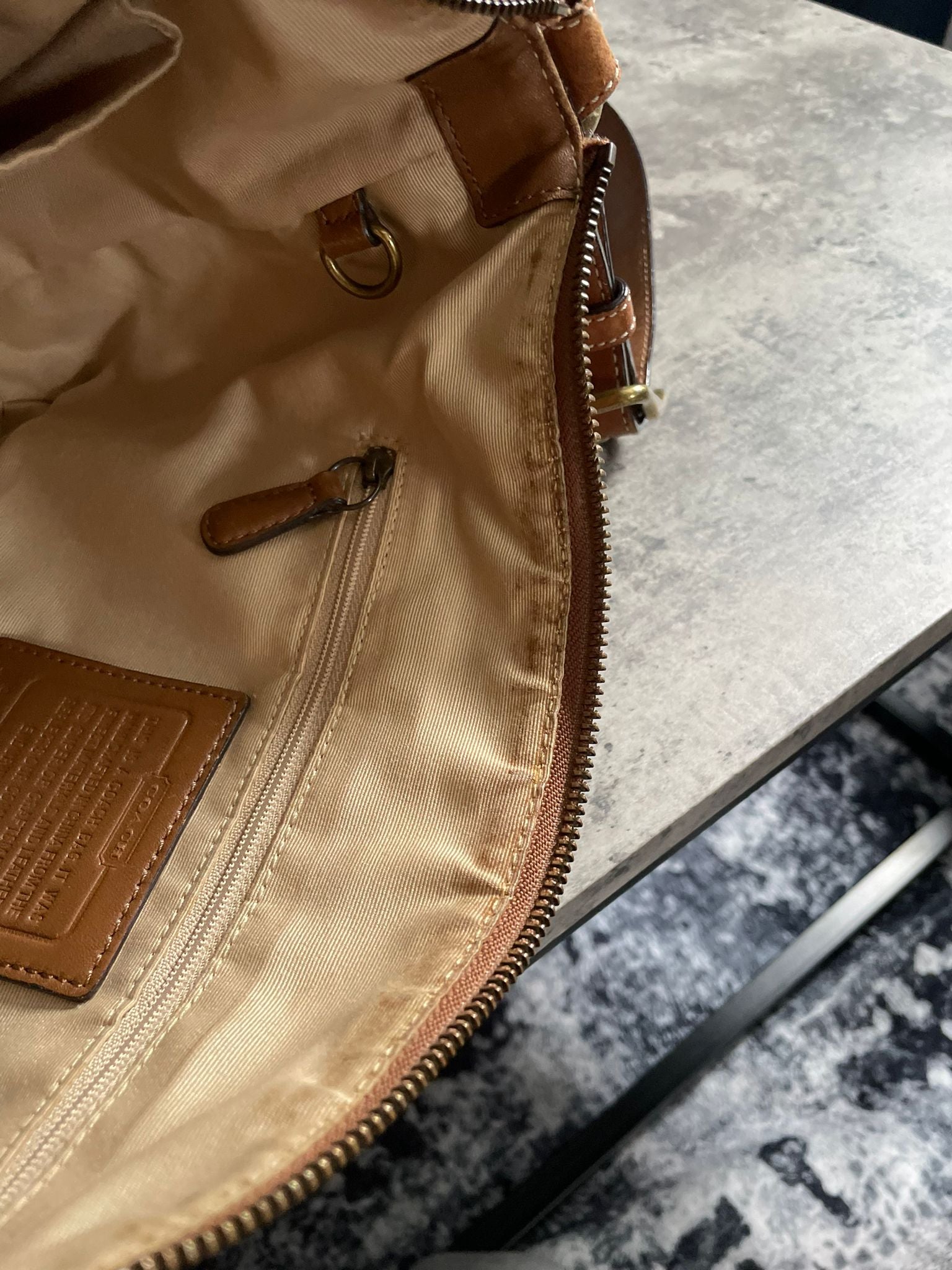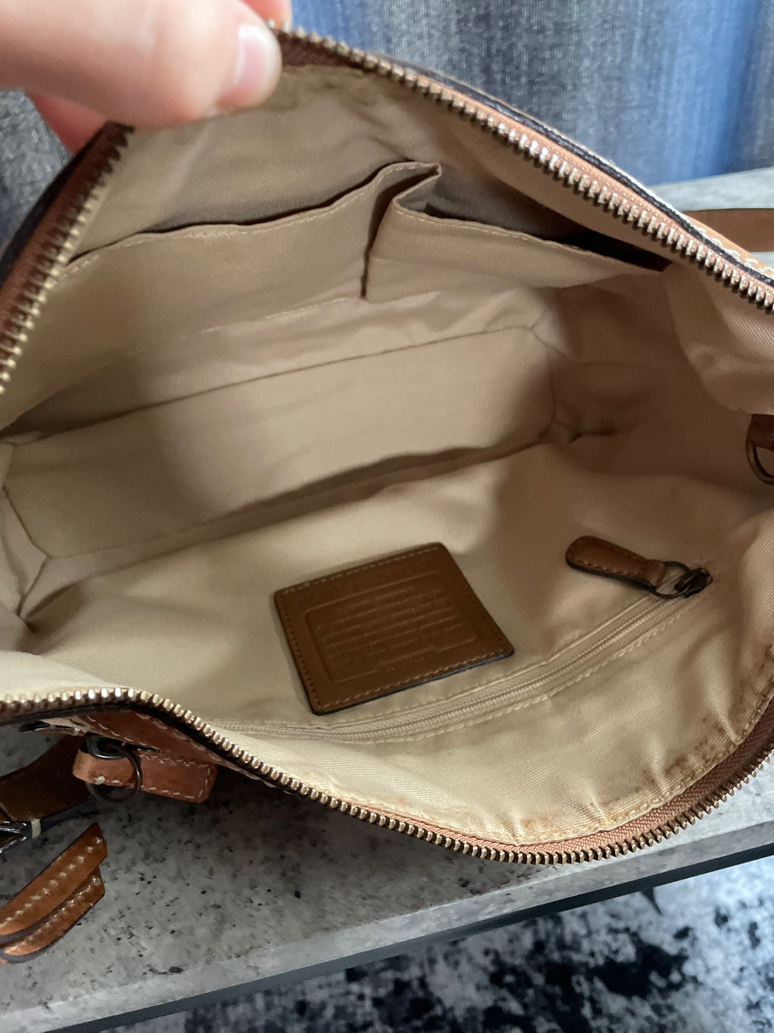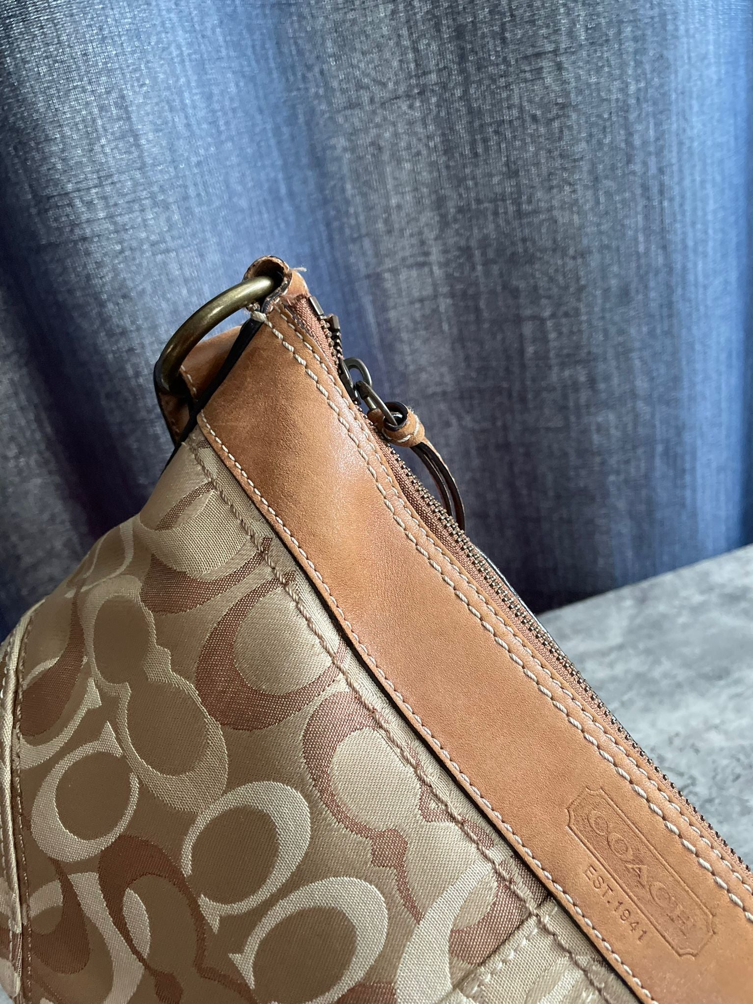 Vintage Coach Monogram Crossbody Bag Beige/Brown Y2k Authentic